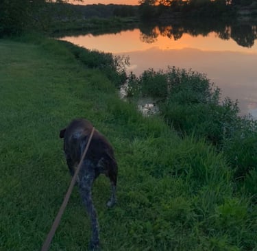 Daisy’s Range was inspired by Daisy ,our most perfect girl in all the lands, a German Shorthaired Pointer who lived life with heart, curiosity, and comfort. Before she lost mobility to arthritis and Cushing’s disease, Daisy loved exploring nature, running through open fields, and soaking in every bit of the outdoors she could.